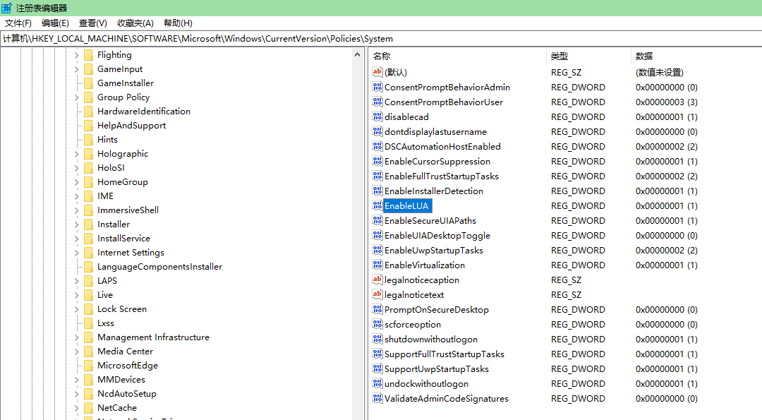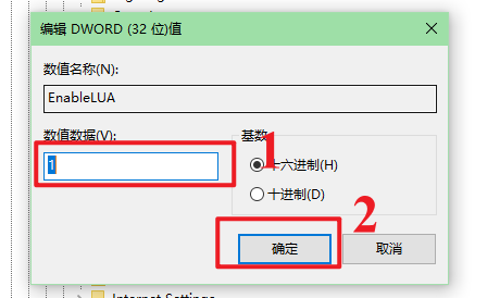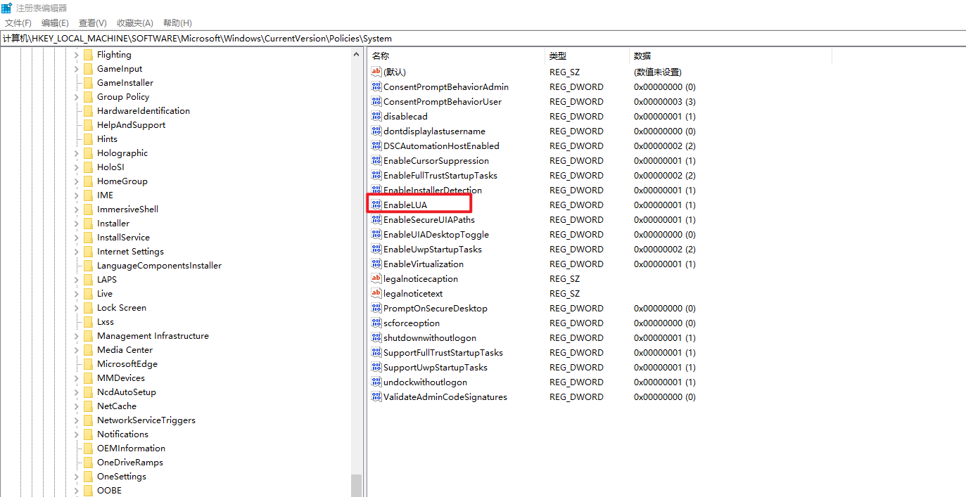 双击EnableLUA